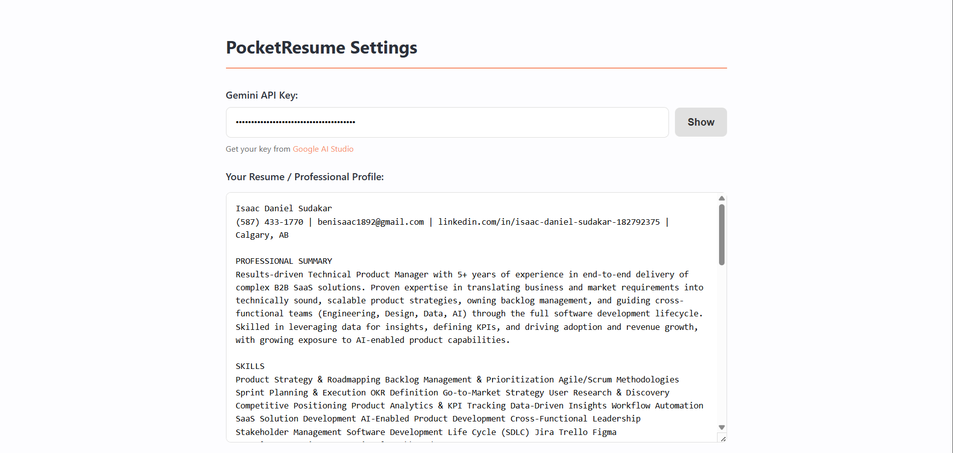 In-context augmentation: The tool lives *on* the job page, reading the DOM to understand requirements and generating the PDF locally.