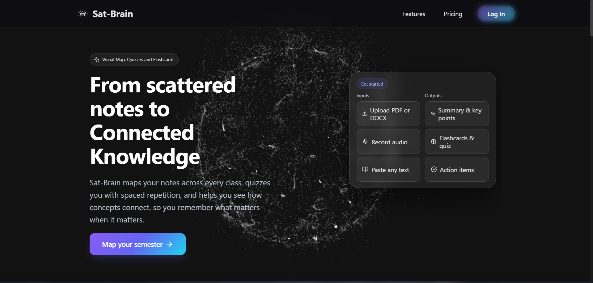 Students and professionals struggle to digest large volumes of information quickly. SatBrain was conceived to leverage GenAI to automatically transform static documents (PDFs, Audio) into active study aids like quizzes, flashcards, and visual charts.